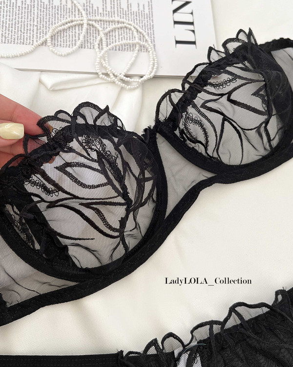 ست دانتل جذاب مدل دکلنه به همراه بند با شورت بکلس قابل تنظیم.کاپ گرد و خوش فرم