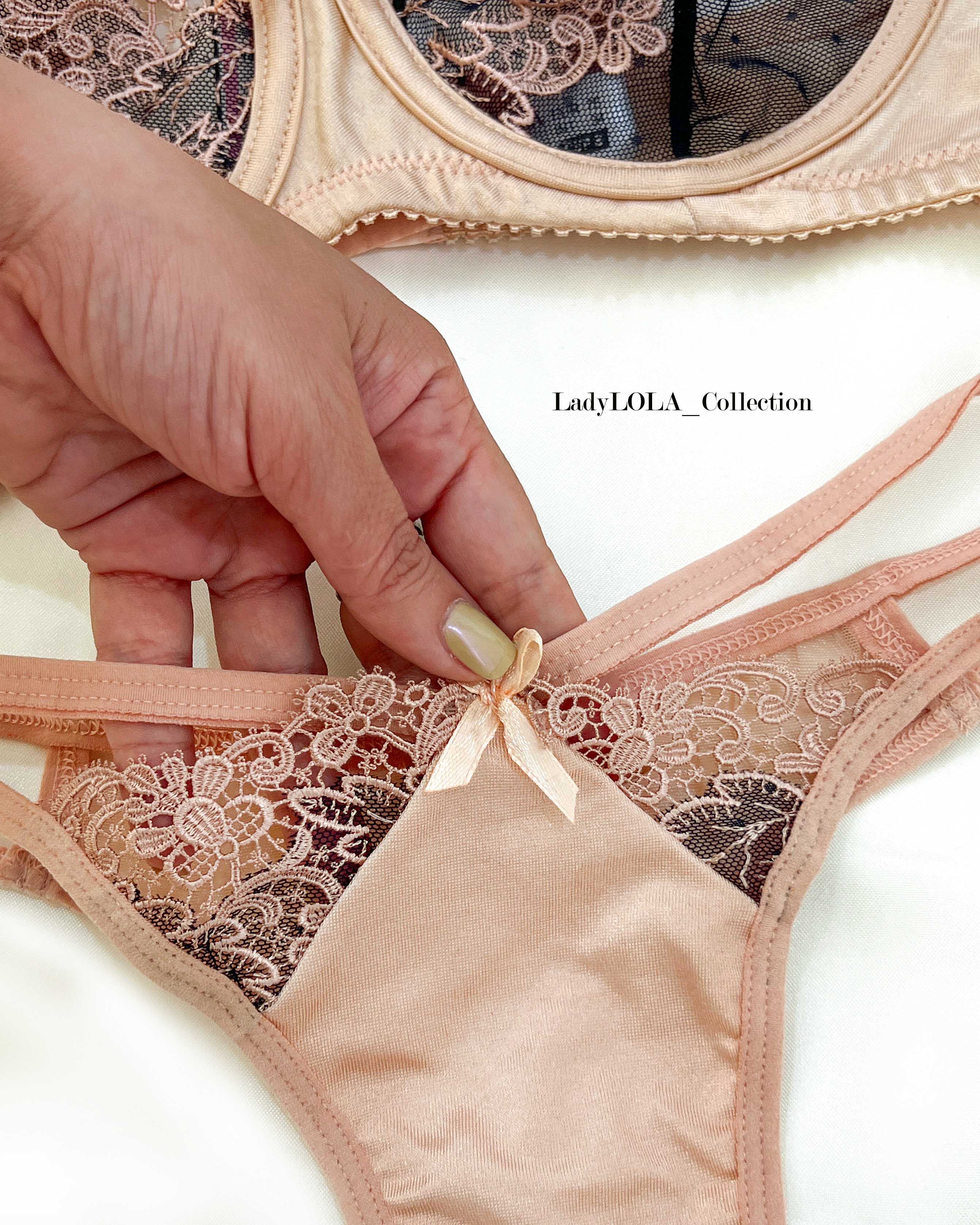 ست تمام دانتل بینظیر . ظرافت دانتلش حرف نداره. بغلاش ساتن کار شده. و شورت بکلس