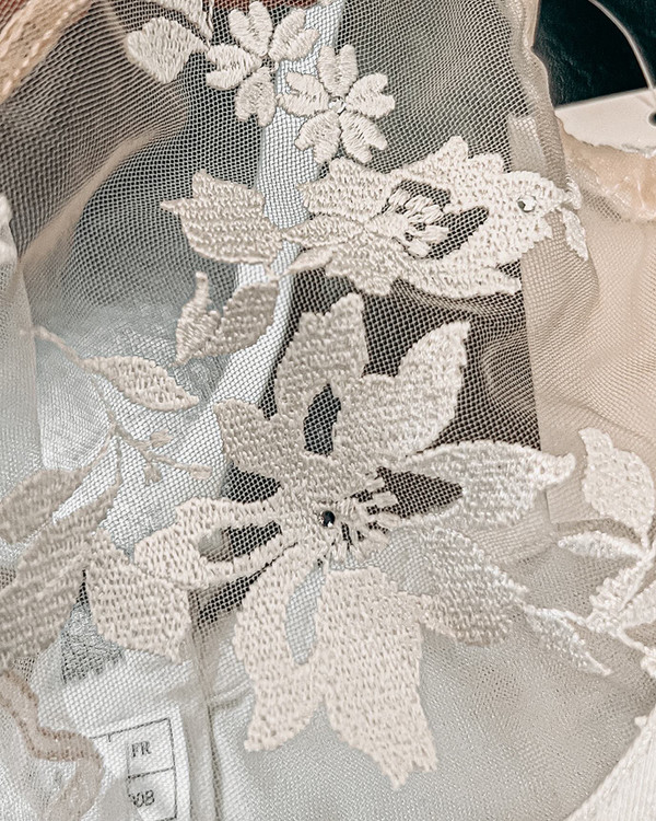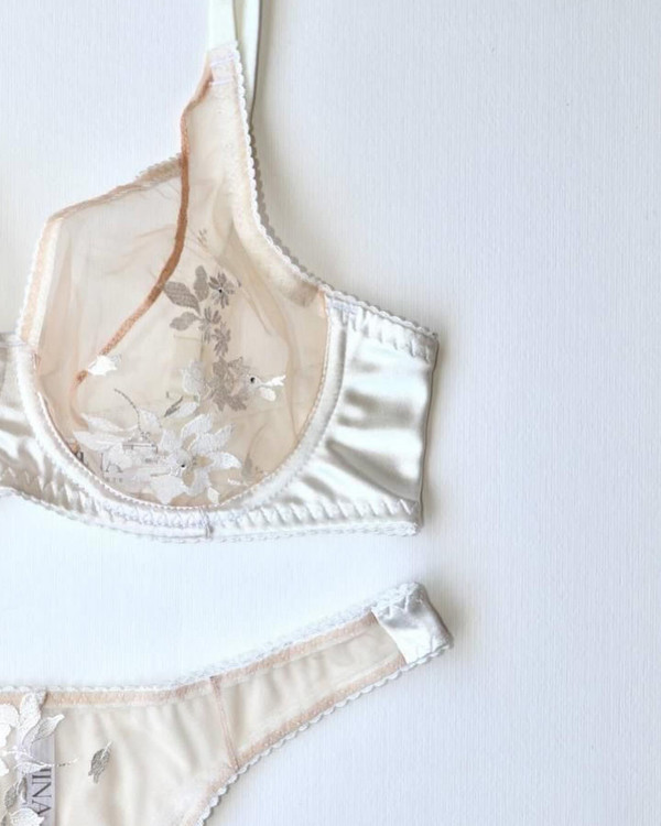 یه ست خیلی خیلی جذاب دانتل،کاپش یکم بالاتره و کامل سینه رو جمع میکنه توو خودش، شورتشم که بکلسه جذابه، دستکش ساتنه، رویش دانتل 😌😌